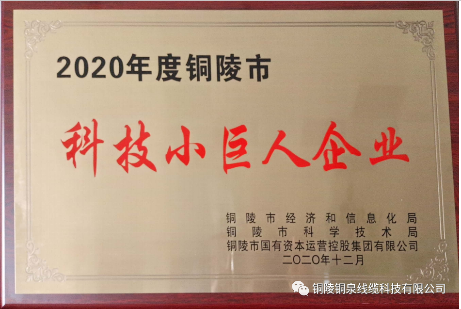 近日,銅陵市經(jīng)濟和信息化局公布了2020年度銅陵市“科技小巨人企業(yè)”,銅陵銅泉線纜科技有限公司榜上有名,成功獲評。此次榮譽稱號的獲得,體現(xiàn)了有關(guān)部門對銅泉線纜科技綜合實力的充分肯定和鼓勵,是對我們堅持科技創(chuàng)新并取得良好經(jīng)營業(yè)績的高度認(rèn)可。